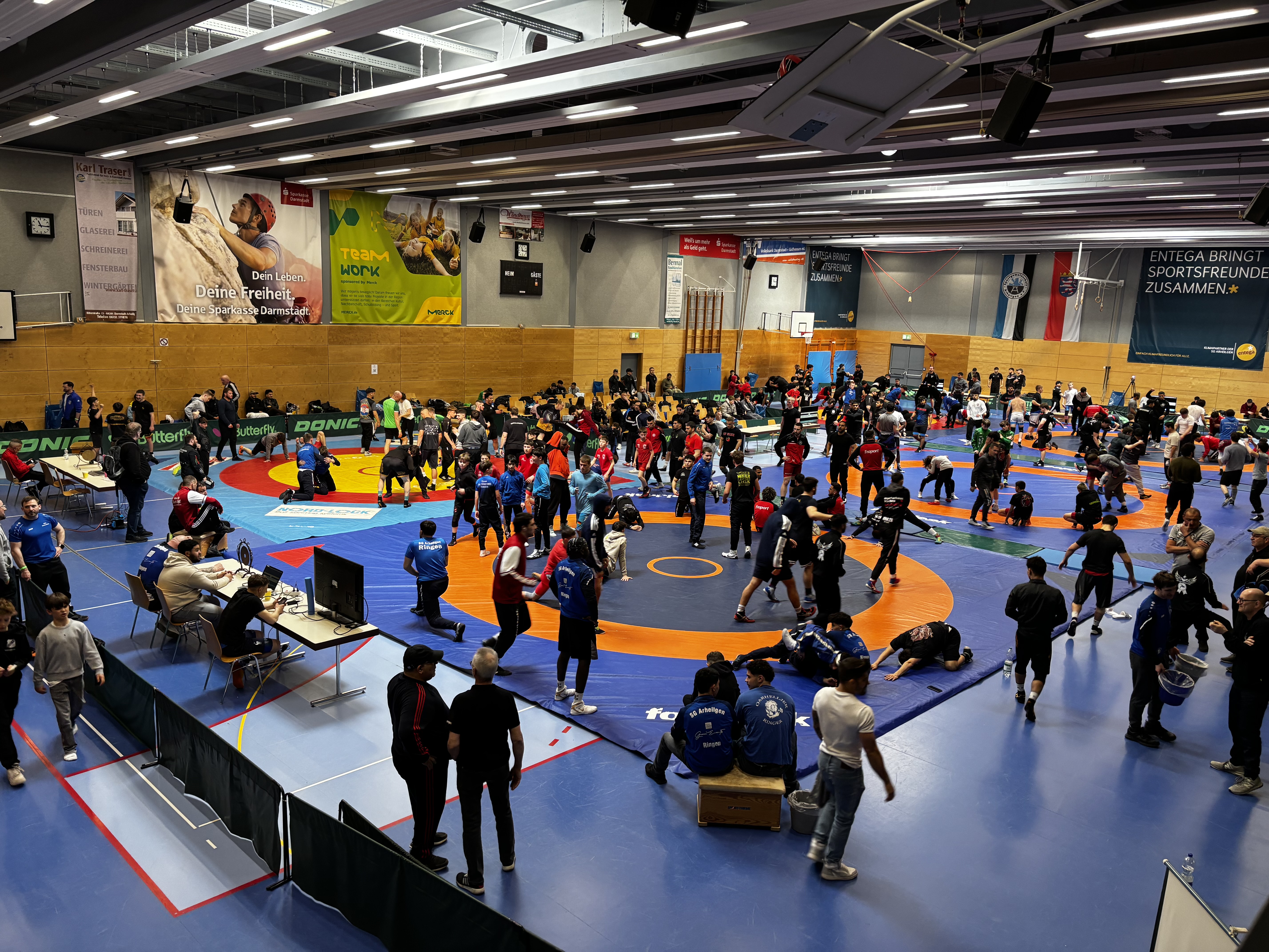 Am 11.04.26 richteten die SGA Ringer die Hessenmeisterschaften im Freistil für Männer und U14 aus. Rund 240 Athleten aus ganz Deutschland kämpften 6 Stunden lang im Merck-SGA-Sportzentrum um den Sieg.